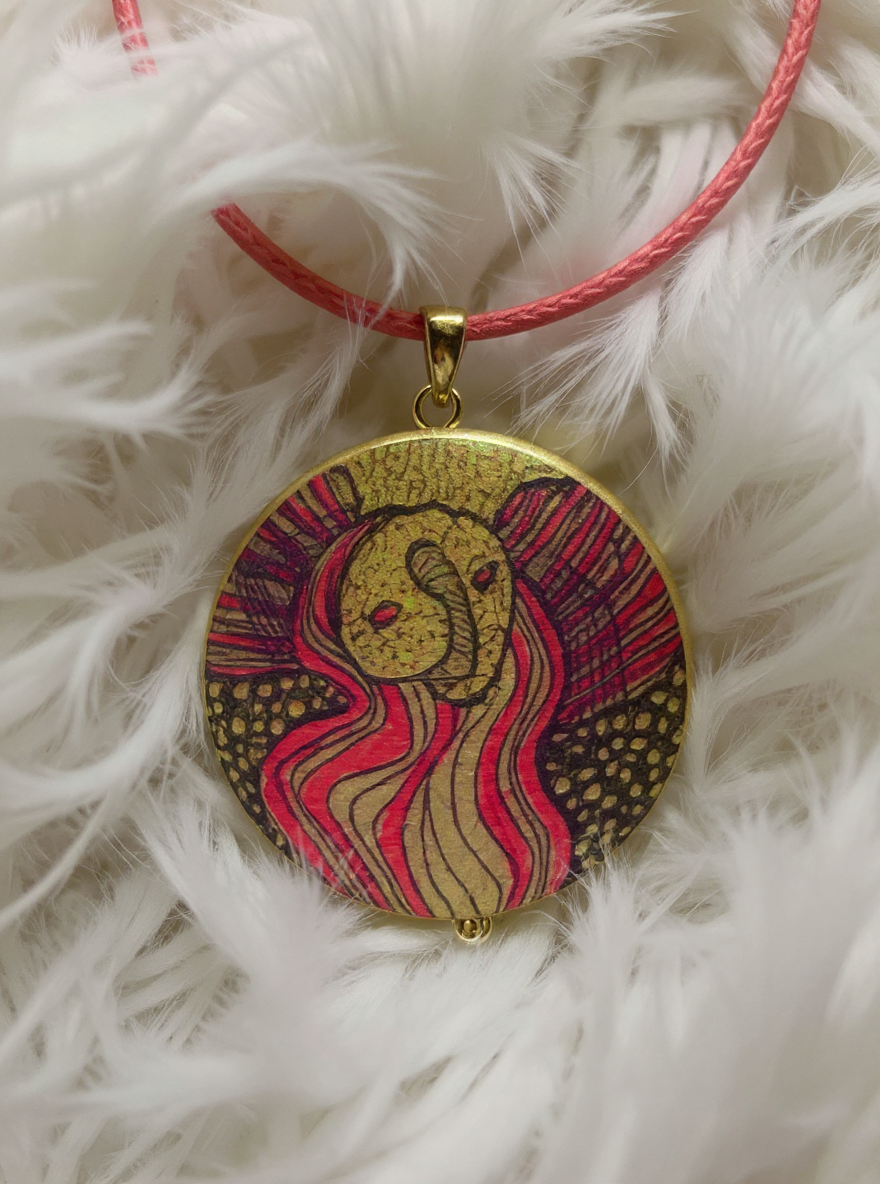 Messenger Angel 007 colour printed pendant neckace with sterling silver bail